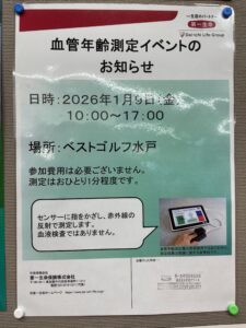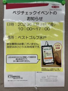 2026年1月9日(金)血管年齢測定及びベジチェックイベントのお知らせです。